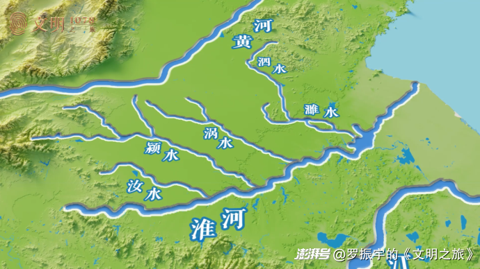 那你想,黄河地势高,这个区域的支流、干流,往北流是不可能的,水流只好另找出路,掉头往南去找淮河,于是黄河到淮河的这南北纵深大概两三百公里的空间里,就出现了大量的从北流向南的淮河支流。比如,汝水、颍水、涡水、濉水、泗水。