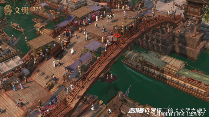 你看这画面中心的这座桥,叫州桥,州桥下面,就是汴河。大宋开封城的绝世繁华,就是在这汴河的两岸展开的。