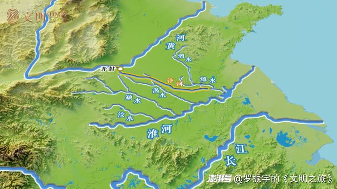 所以你看,我们跳出中原,放眼全国,才能看得懂这条“汴河”的重要性。它不只是开封城的一条物资通道,像一根吸管,一头插在繁荣的江淮,朝廷猛嘬几口,就把大量的资源调到中原地区来,它还是整个中国从东西走向的文明格局,转换成南北走向的过程中的一根关键杠杆。没有它的存在,没有淮河以北一系列支流的存在,我们的老祖先打通南北阻隔,就会困难得多得多。