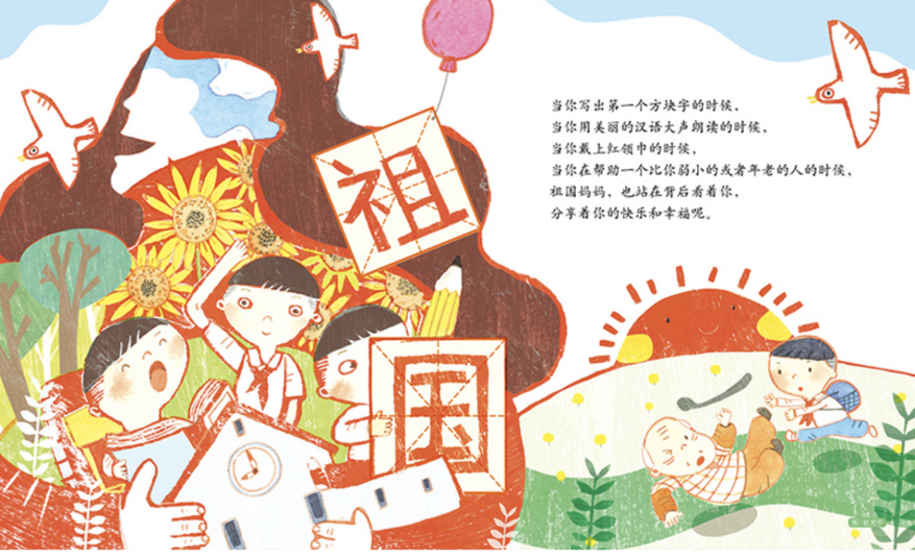 《我的祖国》由著名儿童文学作家徐鲁进行文字创作,并邀请了多位国内知名的画家共同进行绘画创作。全书以简洁、明快的语言,从儿童的视角出发,用生活点滴呈现祖国的可亲可爱。通篇以“我”和“祖国妈妈”的对话展开,将祖国比作孩子身边最熟悉的事物:“我是小燕子,祖国就是我的泥窝;我是小蜜蜂,祖国就是我的花朵……”诗意的语言和温暖的画面,在孩子心中播下家国情怀的种子,让他们懂得祖国就是你我共同依存、最坚实的温暖港湾。