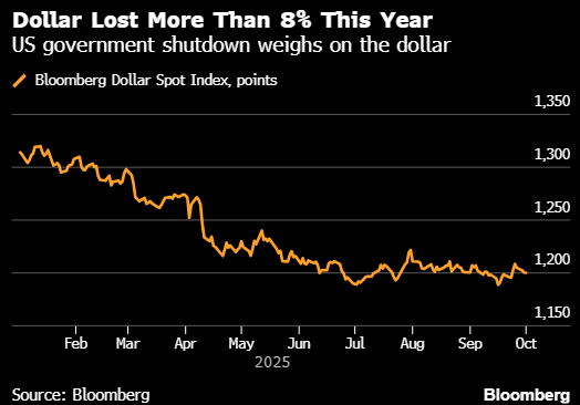 一位顶尖外汇预测人士表示,随着美国政府停摆进入第二天,美元可能进一步走弱。