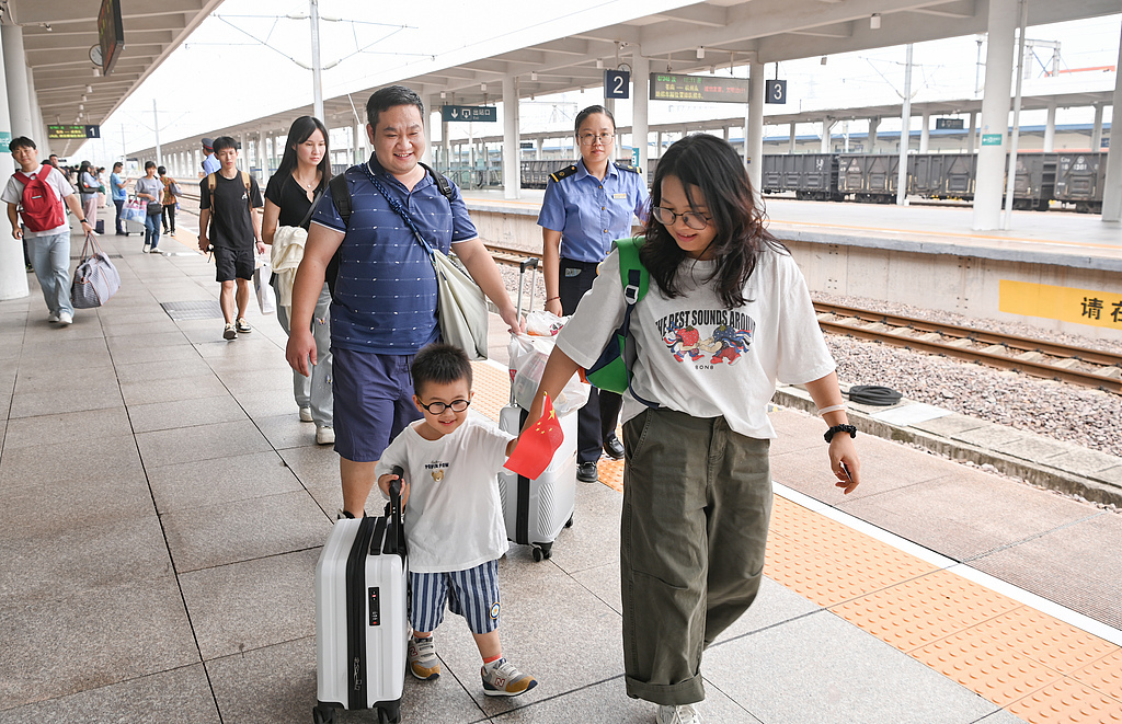 2025年10月1日,浙江金华,旅客在金华南站准备出发。视觉中国 图