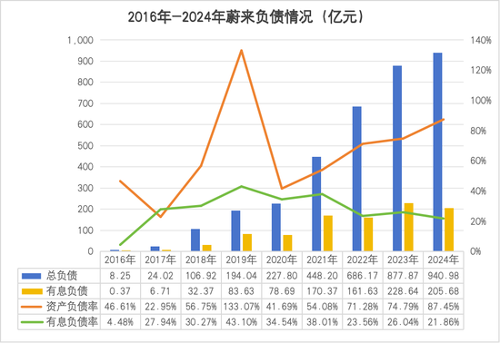 财报显示,蔚来的资产负债率从2020年的41.69%翻倍至2025年Q2的93.39%,突破行业偿债风险阈值。同时,有息负债几乎都保持在20%以上,给企业带来较大的还本付息压力。