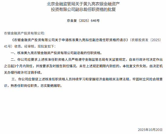 农银投资副总裁黄九亮、首席风险官鲁彬任职资格获批网友刷爆了