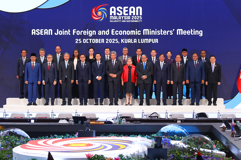 当地时间2025年10月25日,马来西亚吉隆坡,印度尼西亚、马来西亚、新加坡、泰国、越南、菲律宾、文莱、老挝、柬埔寨和东帝汶的政府代表出席东盟外交和经济部长会议。视觉中国 图