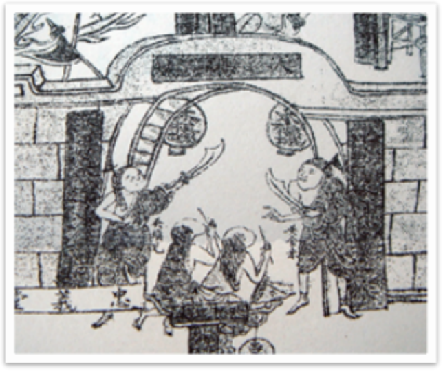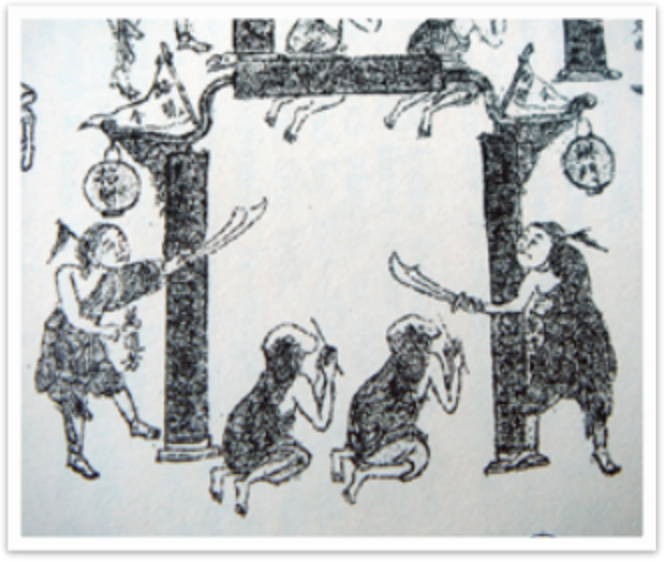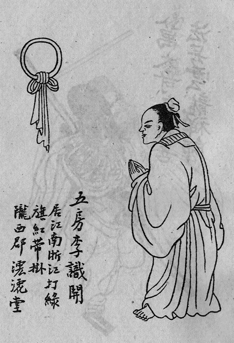 天地会起源传说中最重要人物就是“五祖”,反映在入会仪式中,可以看到仪式会供奉“五祖灵位”。“五祖”即最初创立天地会的五个和尚,他们在起源传说中原本无名,但随着传说的流传和改造,“五祖”都有了对应的姓名,甚至出现了相应的人物形象。如大英博物馆藏“萧一山本”即是证据。