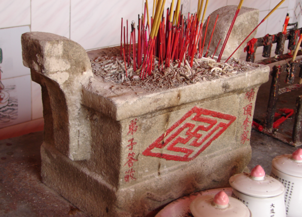 从历史传说上看,天地会初传之地似在观音亭。但我到达漳州云霄县观音亭时,找了半天也没找到白石香炉。在工作人员指引下,我又去到五公里以外的下普庵。在这里我终于找到了“白石香炉”。按起源传说,制作香炉的白色石头下方应刻有“反清复明”四字,我于是问工作人员是否可以抬起来,看下方有没有这四个字。结果他回答说,这个香炉已经无法挪动,无法查看。