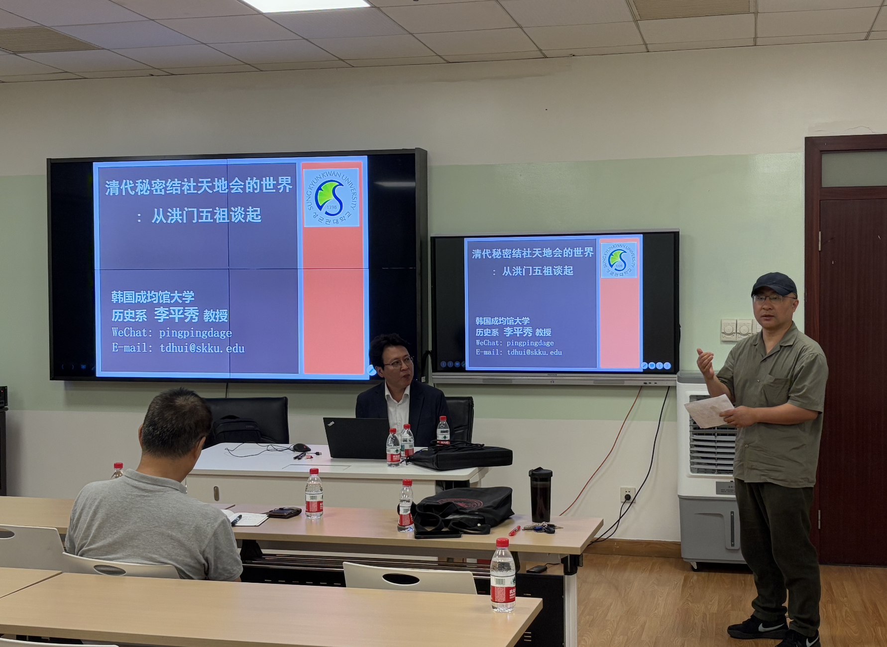 2025年9月23日,韩国成均馆大学历史学系李平秀教授应邀在复旦大学历史学系作题为“清代秘密结社‘天地会’的世界——从洪门‘五祖’谈起》”的学术讲演。这次活动也是“复旦大学历史学科一百周年志庆系列讲座”之一,由复旦大学历史学系戴海斌教授主持,复旦大学历史学系刘平、周健、复旦大学马克思主义研究院王旭、华东师范大学历史学系董佳贝等老师参与活动。本文为主讲人发言稿,末附现场提问和交流内容的整理稿。