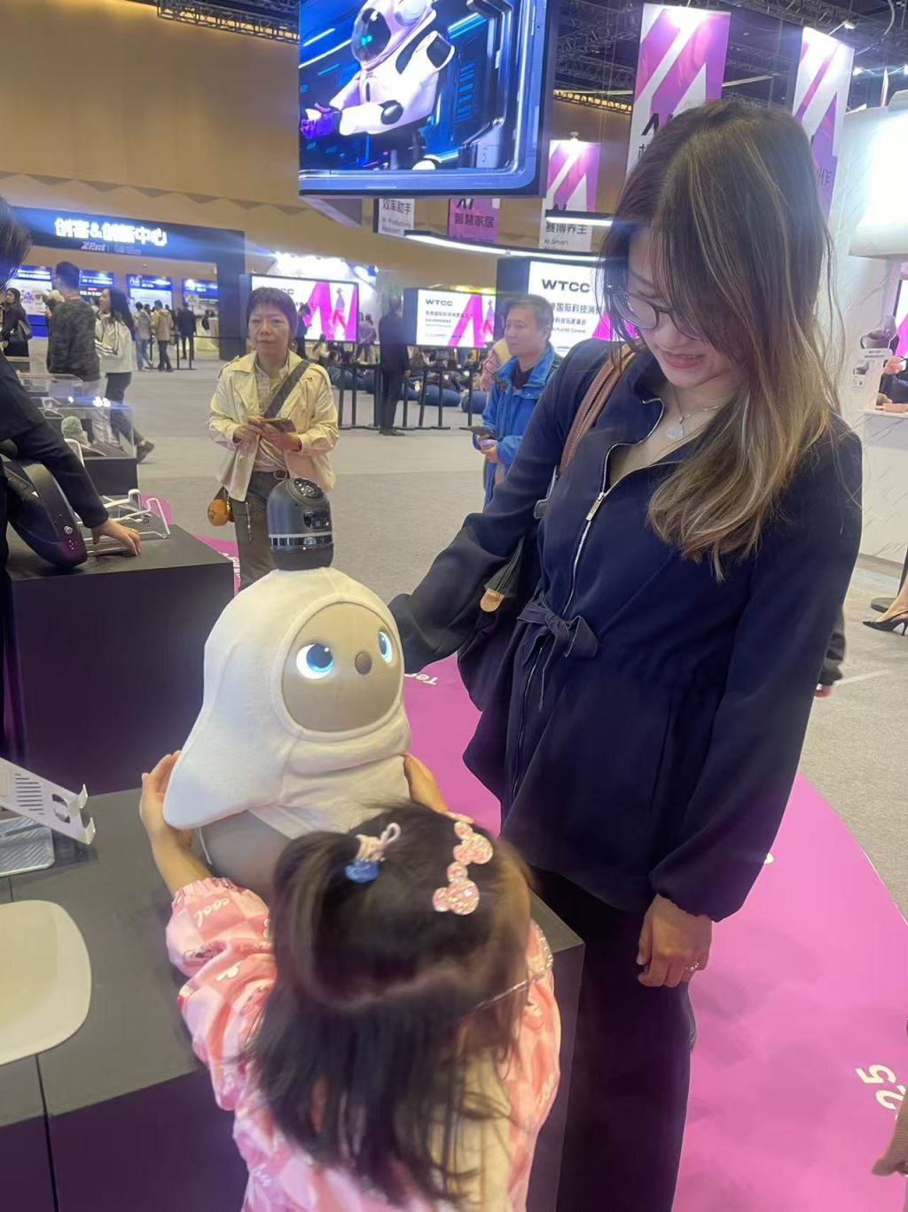 展会现场,日本AI宠物机器人Lovot与人互动 本文图片均由澎湃科技记者 喻琰拍摄