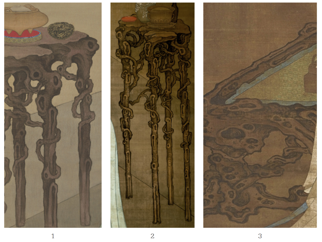 图十二 瘿木家具1.《美人展书图》 2.《春闺倦读图》 3.《闺秀诗评图》