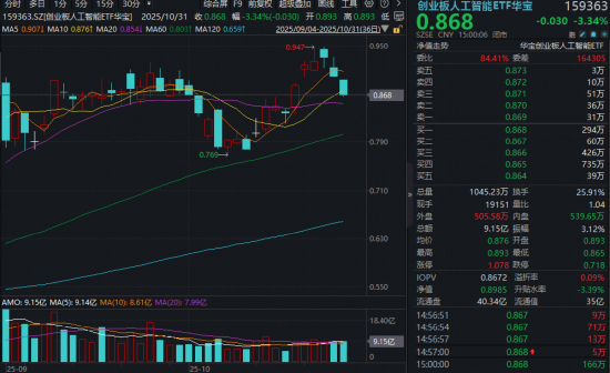 热门ETF方面,同类规模最大、流动性突出的创业板人工智能ETF(159363)场内继续下挫超3%,日线三连阴,全天成交额超9亿元。资金再度净申购8200万份,此前三日已累计净买入超2亿元。
