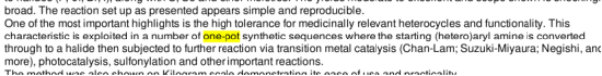 论文中反复提到“一锅法”和“氯代吡啶”(lǜ dài bǐ dìng)这两个词。