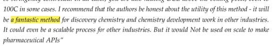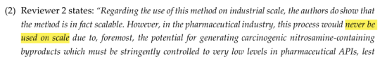 有位审稿人说这个方法不会被用来大规模生产成品药。