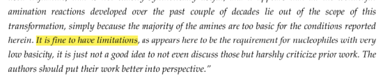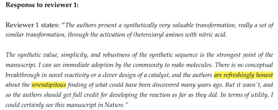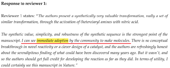另一位审稿人也提醒,这个方法对亲核试剂有要求,碱性太强的不行。但他说:“有局限性很正常,关键是效果摆在那儿。”