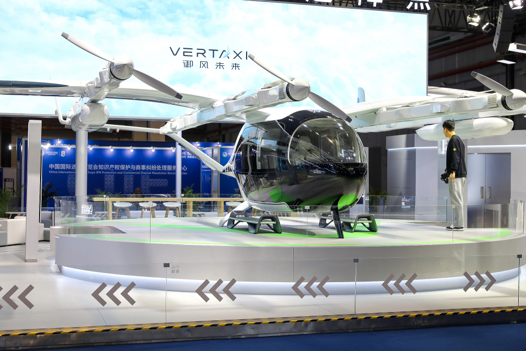 2025年11月3日,上海,第八届进博会未来出行展区,“御风未来”载人的eVTOL飞行器。