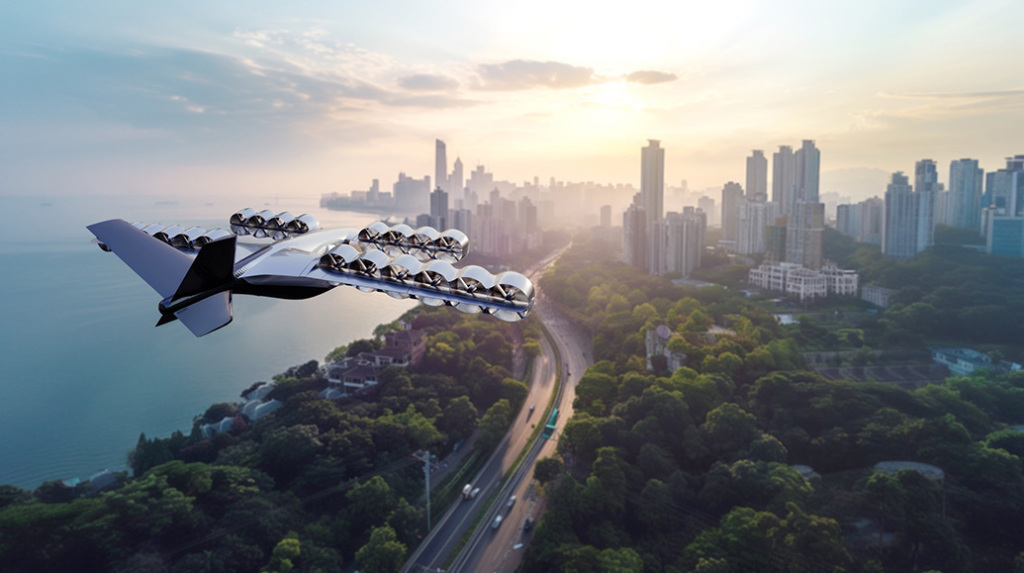 世界上第一款全尺寸倾转涵道翼构型设计、可垂直起降的“空中专车”INFLYNC L600。 (效果图)