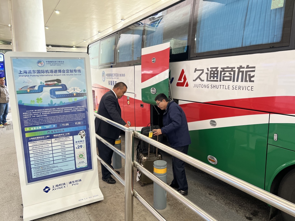 即日起至11月10日,上海浦东国际机场进博会定制公交专线开行,往返浦东机场和国家会展中心(上海)北广场,单程运行时间约60分钟。从北广场下车后,步行约3分钟即可抵达进博会场馆。展会期间,出示本届进博会有效证件后可搭乘专线,乘客还可在国家会展中心(上海)北广场免费寄存2件行李。