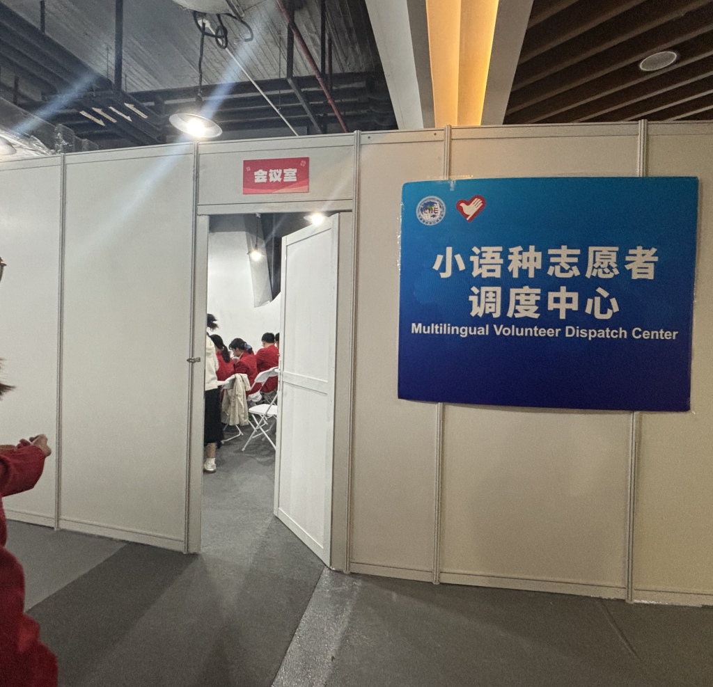 2025年11月9日,进博会今年首次设立的“小语种志愿者调度中心”。澎湃新闻记者 韩晓蓉 图
