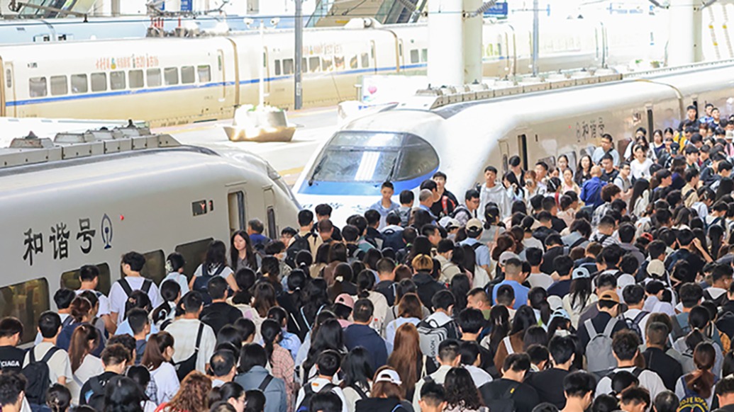 2025年10月8日,江苏南京,旅客在南京火车站有序出站。视觉中国 资料图
