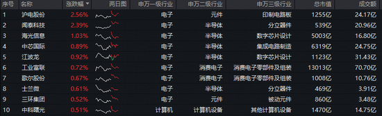 图:电子ETF(515260)标的指数涨幅前10大成份股