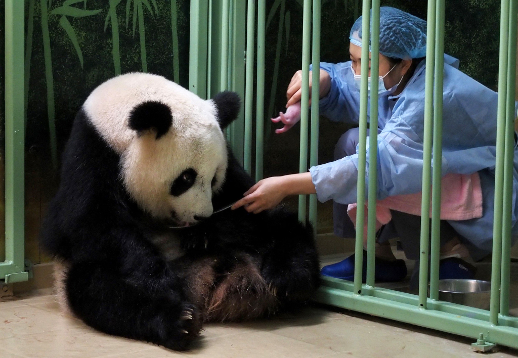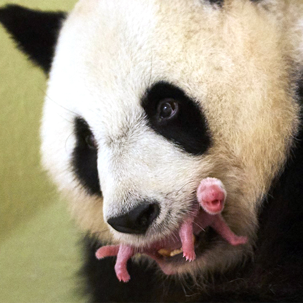 2021年8月1日,法国,“欢欢”在博瓦勒野生动物园成功诞下双胞胎“欢黎黎”和“圆嘟嘟”。
