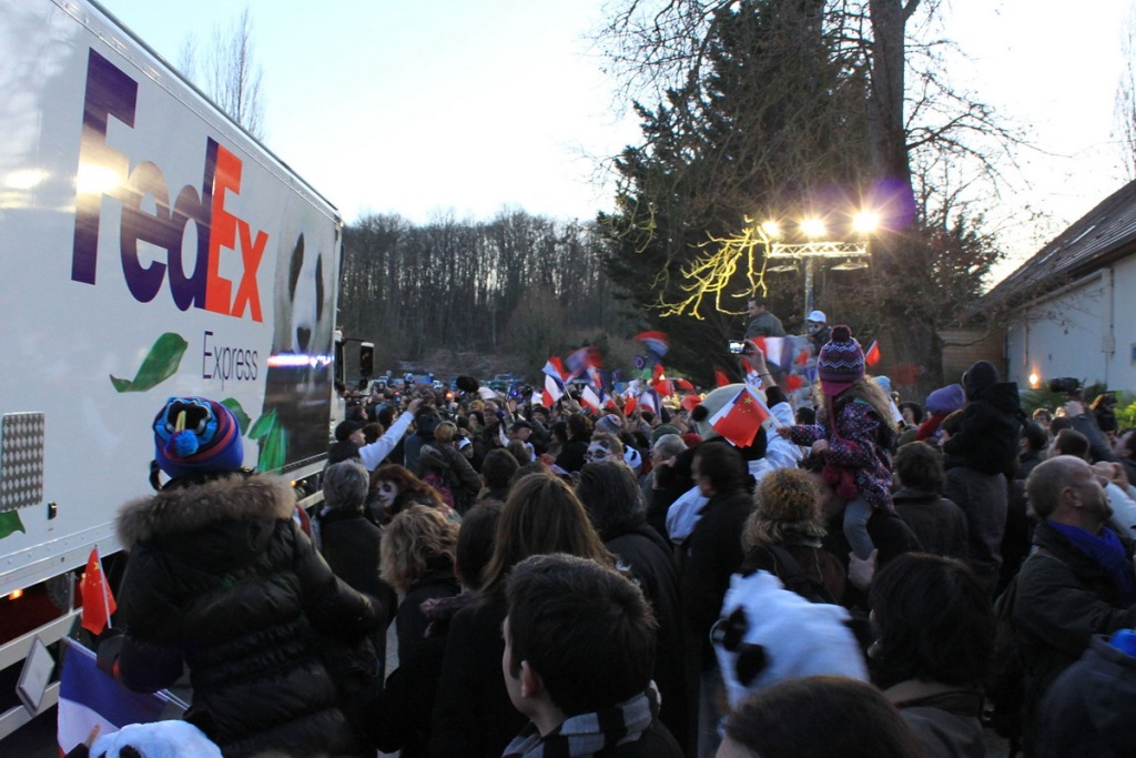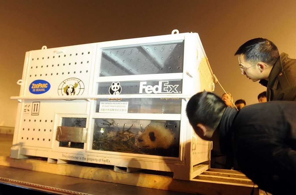 2012年1月15日,大熊猫“圆仔”(雄性)和“欢欢”(雌性)从成都大熊猫繁育研究基地前往法国。