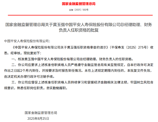 黄玉强获批出任平安人寿总经理助理、财务负责人网友怎么看