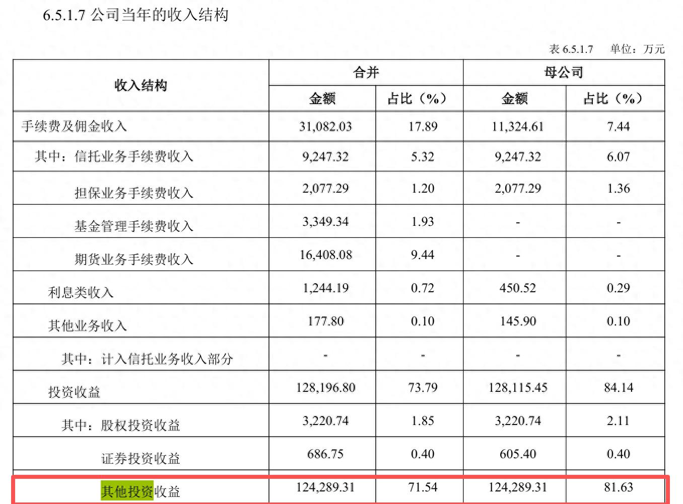 年报显示,这一投资收益主要系靠“其他投资”所实现。报告期内,吉林信托“其他投资”资产类别从期初2.63亿元大增至12.67亿元,由此带来其他投资收益12.43亿元,占到当年总投资收益的7成比重,但吉林信托未对“其他投资”进一步披露细节。