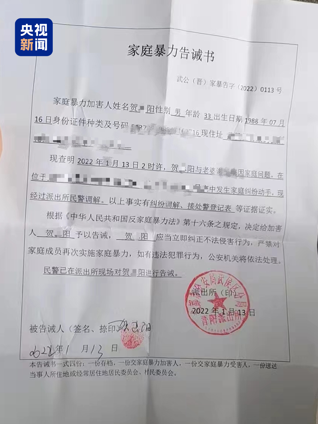 两年的婚姻里,受害者谢女士遭到丈夫贺某阳多达16次的家暴,20多处遍布全身的伤痕,包括多处永久性的伤害。在受害者迎来正义的背后,也有令人遗憾的事实:当地警方两次发出《家庭暴力告诫书》,她也曾向法院申请过人身安全保护令,但仍被丈夫实施严重的暴力。
