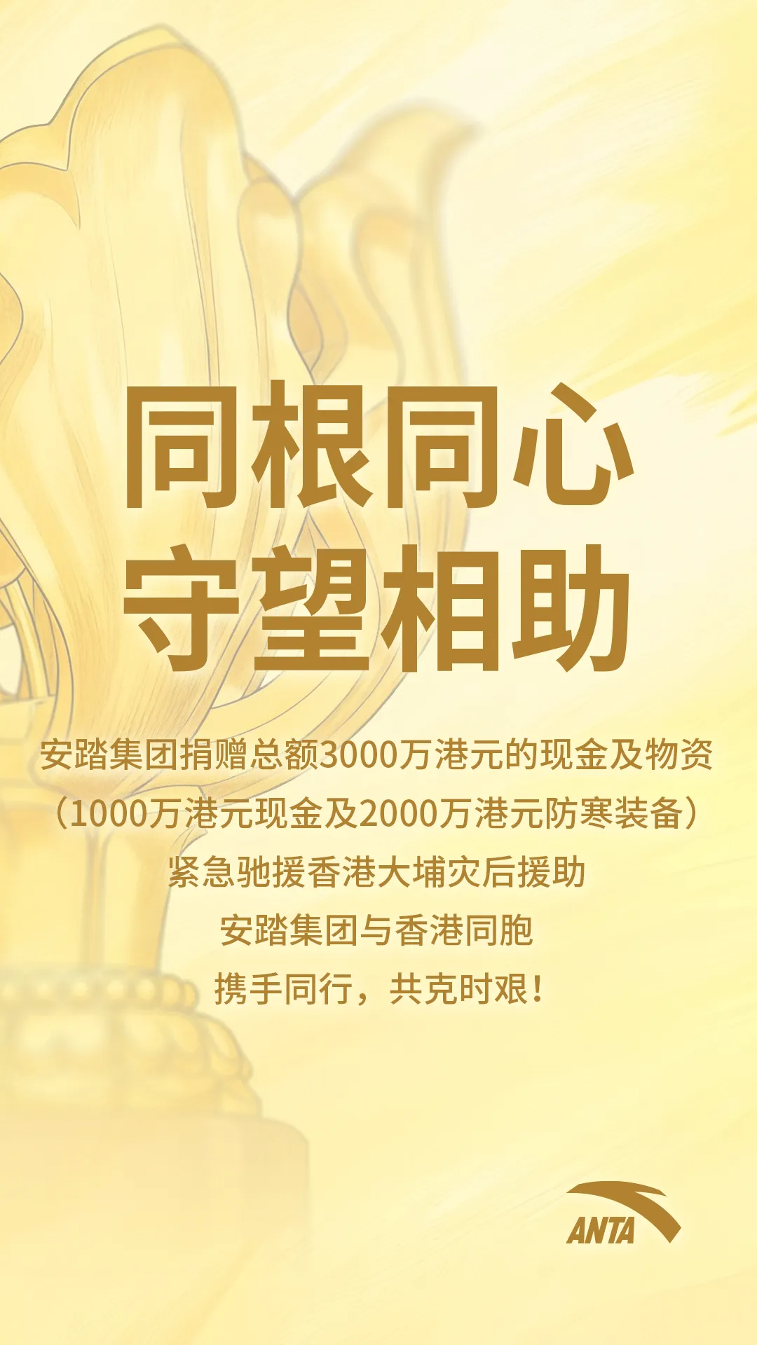 同根同心,守望相助!安踏集团与香港同胞携手同行,共克时艰!