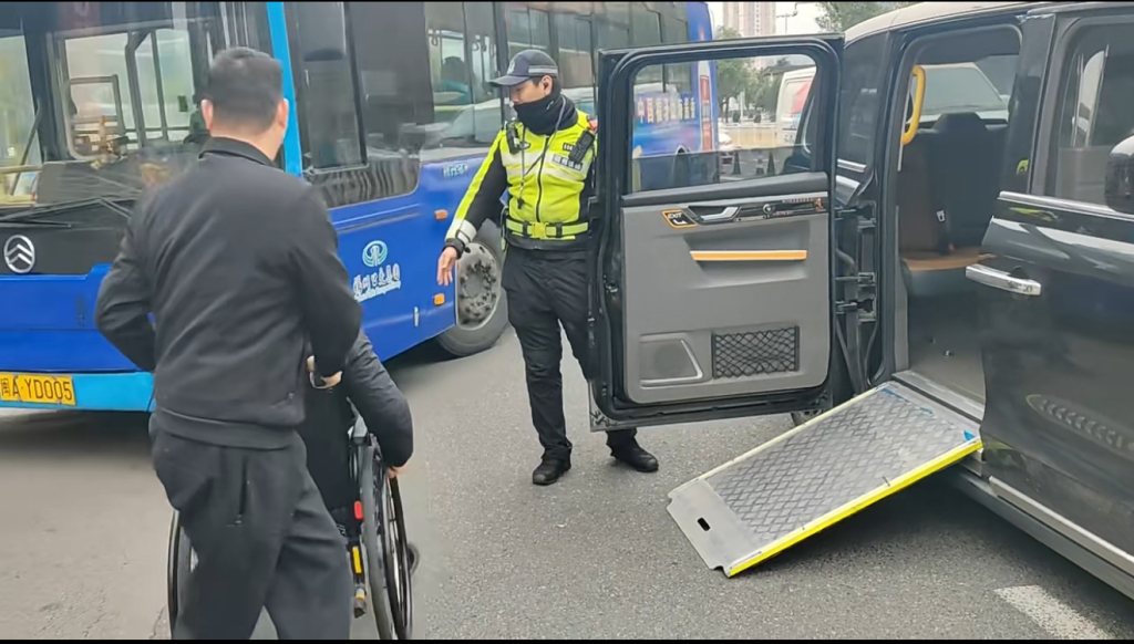 在他看来,“礼帽”专车的无障碍设计不仅是残疾人的福音,也能惠及全国3亿多老年人及家属的出行痛点。“很多老人年纪大了,腿脚不利索,尤其是术后康复、关节不好或体弱的老人,上下车时移位特别费劲。家属搀着怕用力不当伤了老人,自己挪又没力气,稍不留意就可能摔倒。”他解释,有了专属坡道,老人可以直接坐在轮椅上被推上车,既省去了移位的麻烦,也减少了磕碰风险。