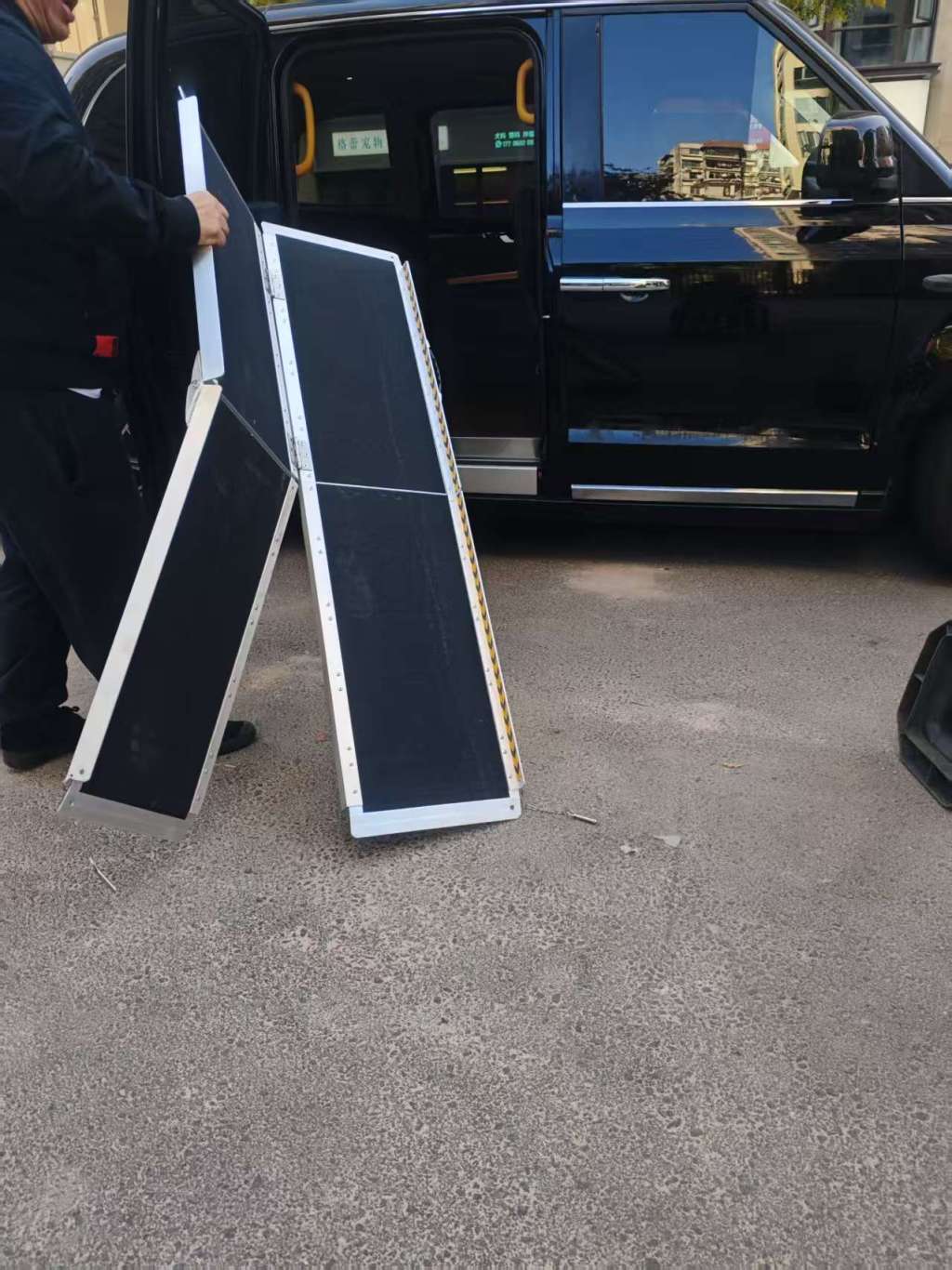 “这种拼接板和车身之间没有任何锁扣固定,完全是直接搭靠在车身上,不仅表面光滑易滑,承重能力也让人存疑。”郭兵说,就连司机都跟他表示存在风险,“万一没搭稳,上下车时滑倒或者坡道塌陷,对我和司机来说都是极大的安全威胁。”