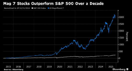 一个衡量科技七巨头股票的指标自2019年底以来已上涨超过600%,标普500指数同期涨幅仅为113%。这一现象得益于疫情推动的投资科技巨头热潮以及近期人工智能领域的蓬勃发展。