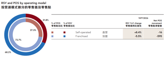 加盟店数量的萎缩,使周大福短期业绩承压。2026财年半年报显示,受门店整合影响,其内地批发业务(指向加盟商销售货品及向加盟商提供服务的收入)营业额下跌10.2%,导致公司内地营业额亦同比下跌2.5%。
