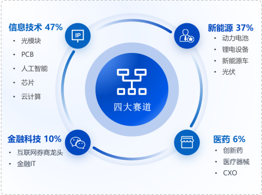 创业板为主要“三创(创新、创造、创意)四新(新技术、、新业态、新模式)”的成长型创新创业企业提供直接融资平台。权重行业方面,聚焦信息技术+新能源+金融科技+医药四大新质生产力赛道,科技成长属性纯粹。