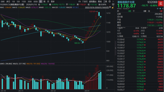 1月16日,港股市场整体延续调整态势,医药板块随市走低。AI医疗概念短线“降温”, 港股通医疗ETF华宝(159137)收跌0.93%两连阴。创新药龙头跌多涨少,创新药含量100%的港股通创新药ETF(520880)收跌1.08%。