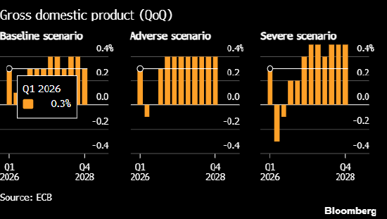 欧洲央行的最新预测显示,基线情境下,今年欧元区CPI预计将上涨2.6%,远超之前的预想。极端情境下,如果油气供应冲击持续,通胀率可能达到6.3%。