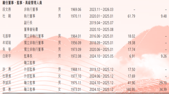 2025年报显示,渤海银行离任董监高共有10名,其中包括副行长杜刚、监事长白新宇等等。